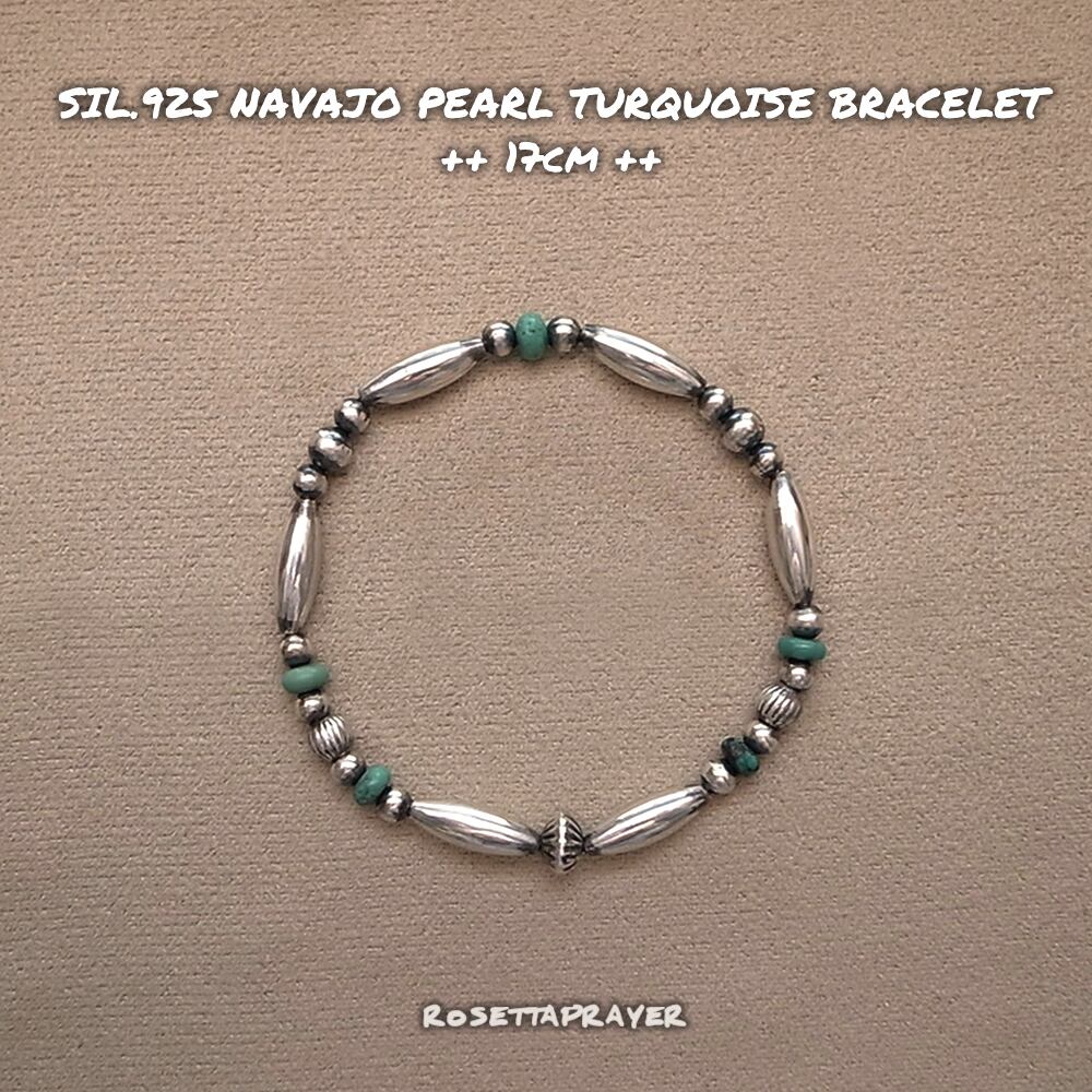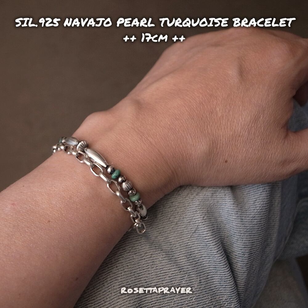 シルバー925 ナバホパール ターコイズ ブレスレット- 17cm