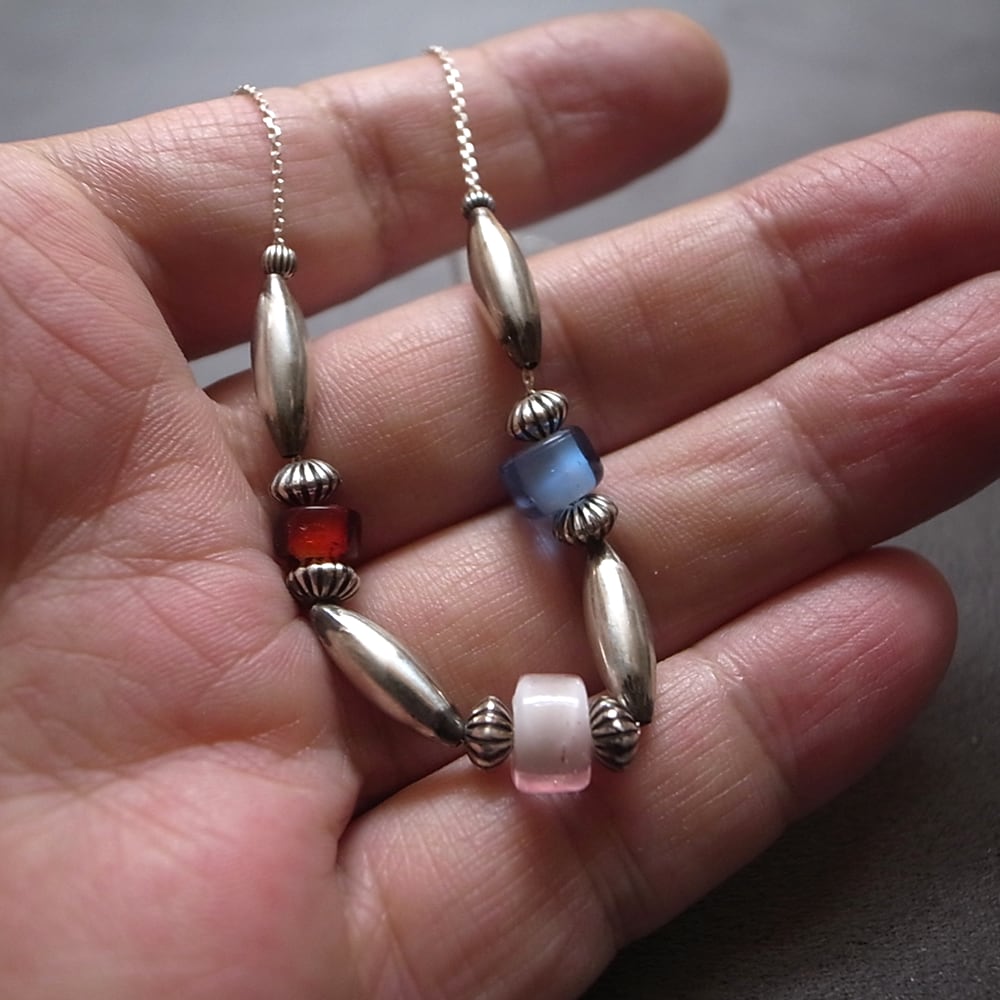 素材:シルバー925- チェーン、フック、ナバホパール(シルバービーズ)