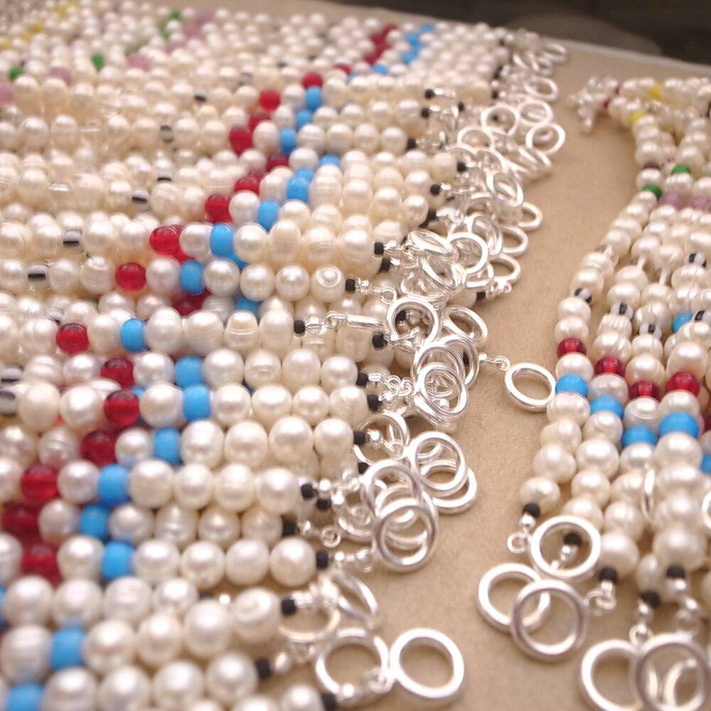 素材:淡水パール、シルバービーズ、チェコグラスビーズ