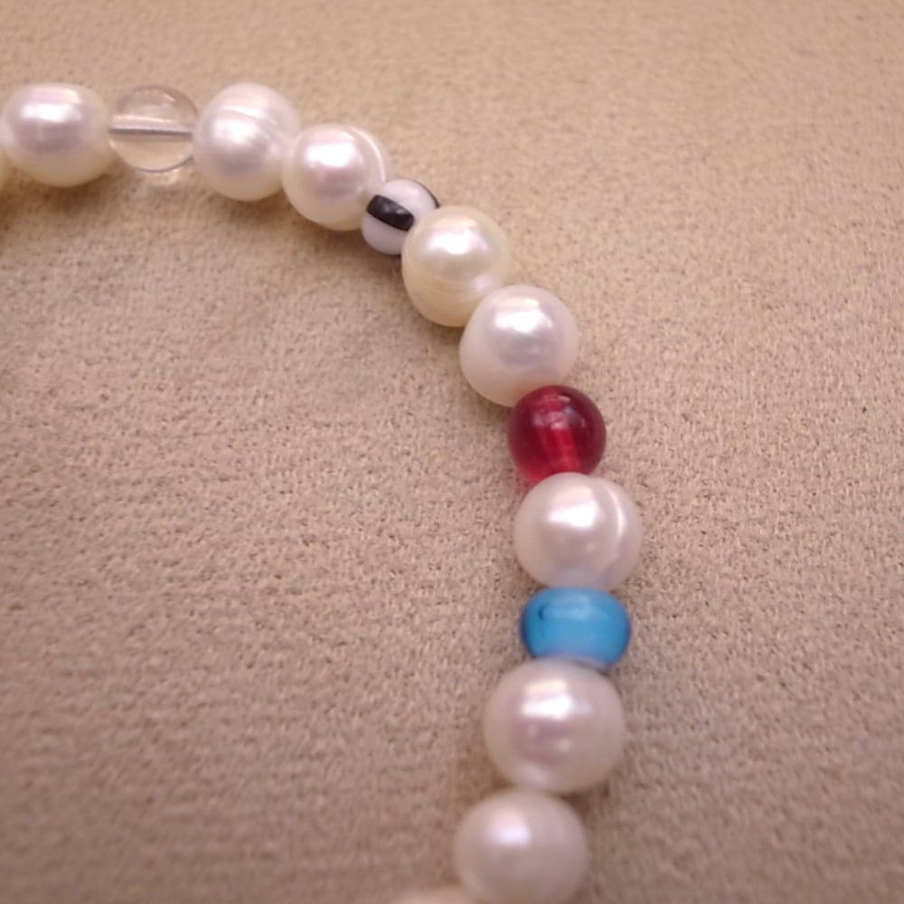 厳選した輝き、形がAA品質の6~8mmの淡水パールと、チェコグラスビーズをミックスしたブレスレットになります。