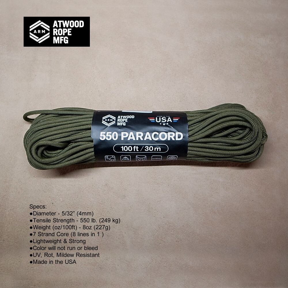 今回使用した550 PARACORDは550lb(250Kg)の荷重に耐えられる幅4mmのモノを使用しています。