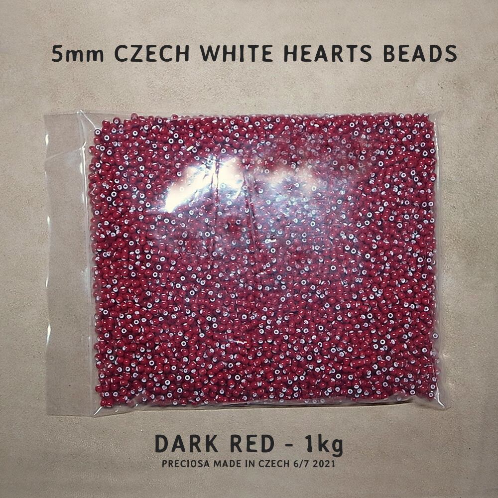 厳選1kg-5mm PRECIOSA社 チェコホワイトハーツビーズ- DARK RED lot#06072021業販