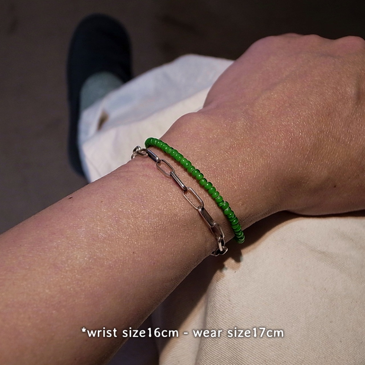 3mm ホワイトハーツビーズ ブレスレット -グリーン