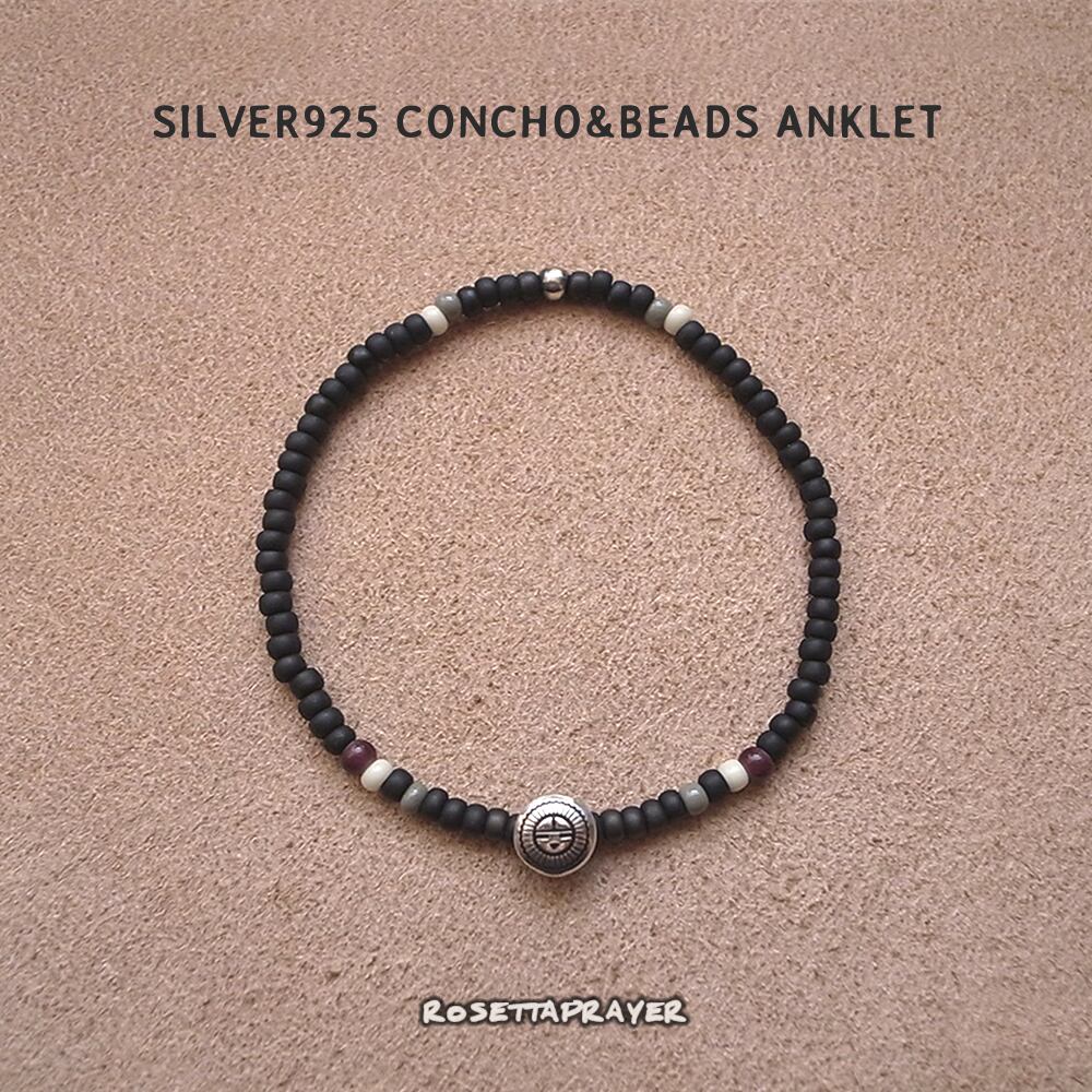 オリジナルコンチョとナバホパール(シルバービーズ)プラス5mmビーズを使ったアンクレットになります。