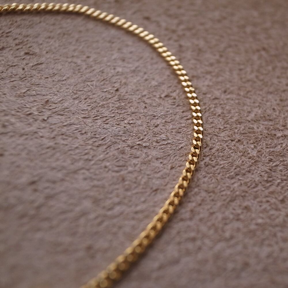 1.5mm幅の真鍮チェーンに18金メッキを施しました。