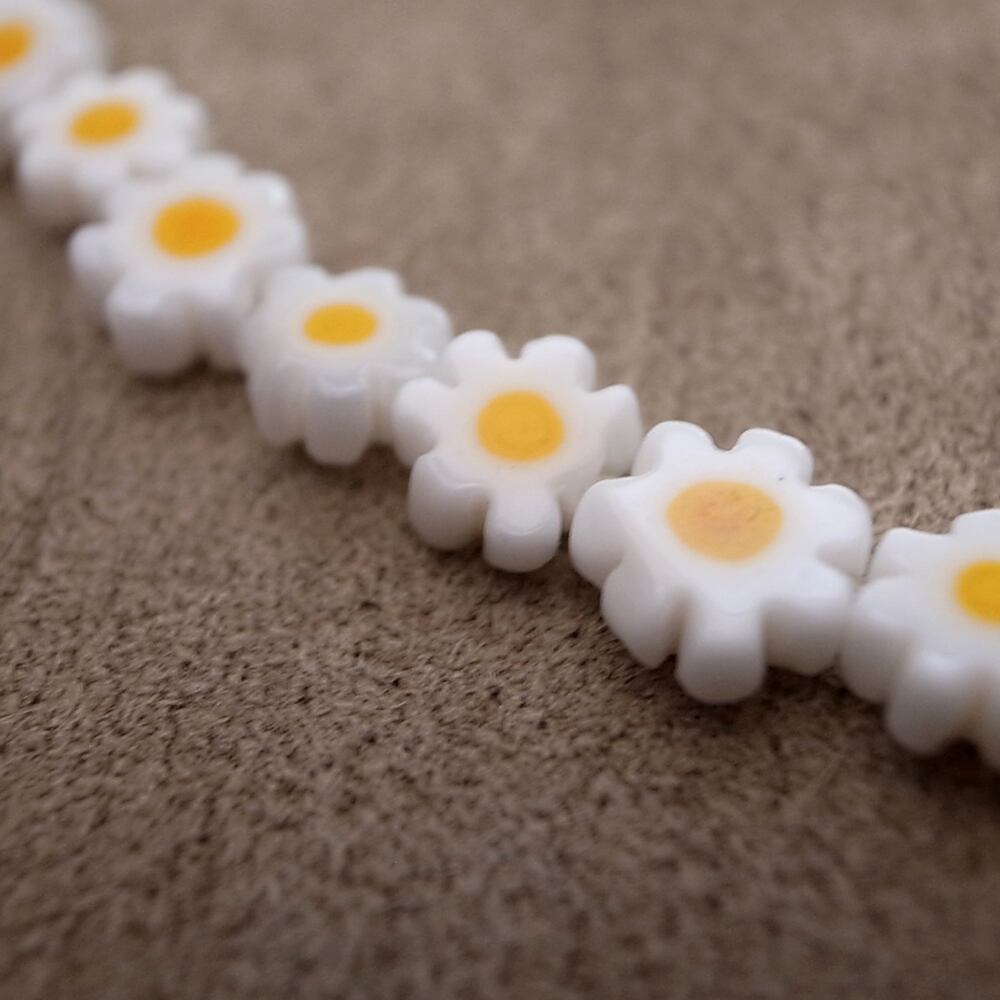 ミッレフィオーリ ビーズ ネックレス- ホワイト フラワー