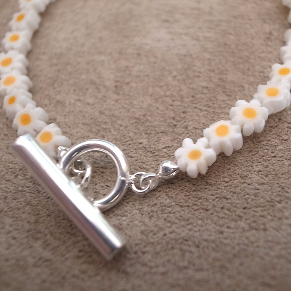 MILLEFIORI FLOWER BEADS BRACELET- WHITE FLOWER
