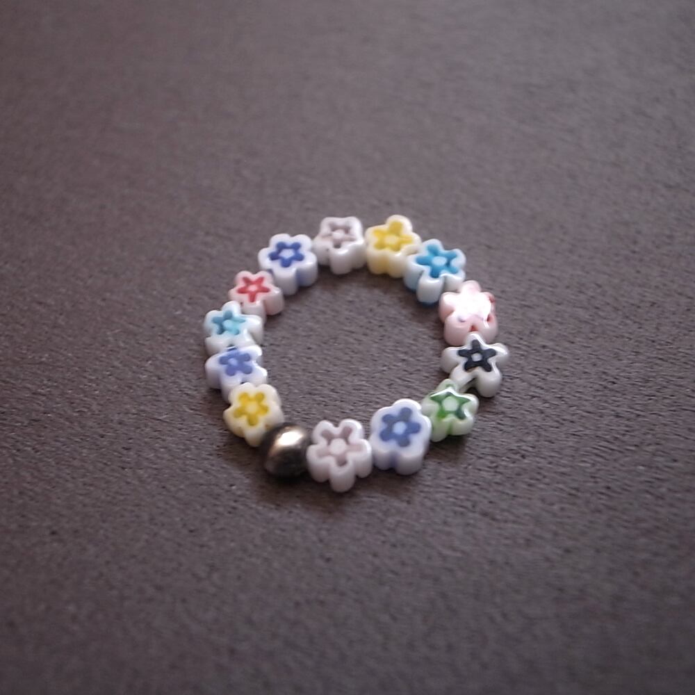 ミッレフィオーリ フラワービーズ リング- ホワイトマルチ