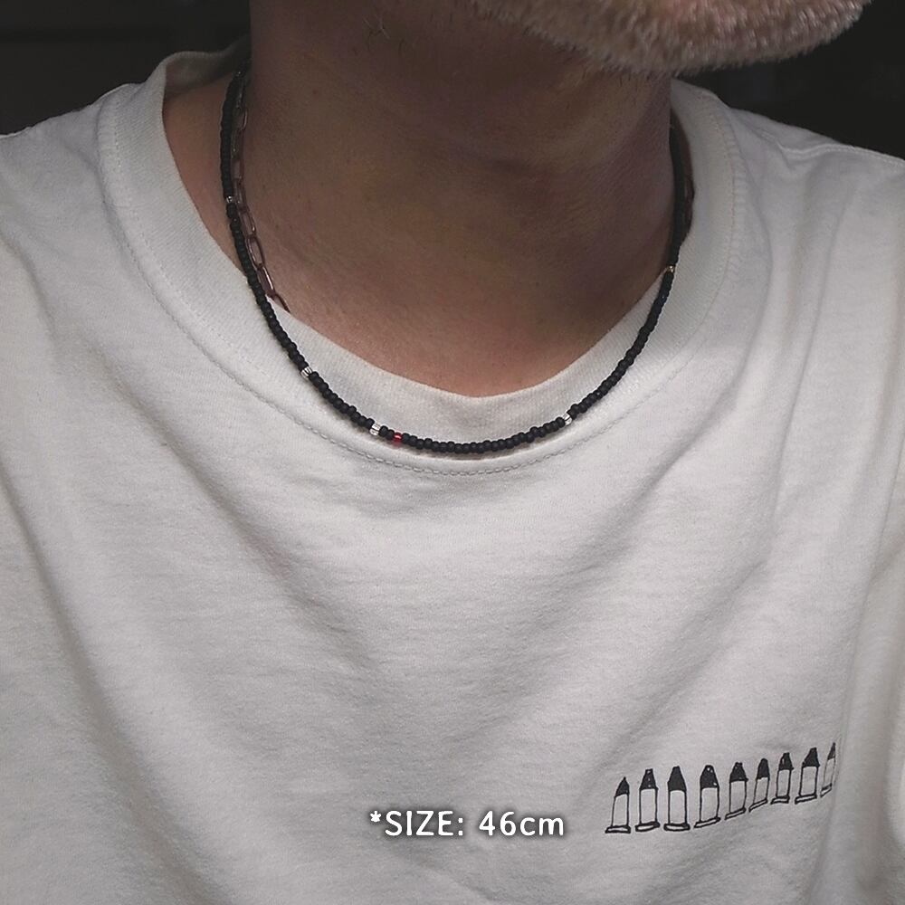 3mm ビーズ ネックレス- マットブラック
