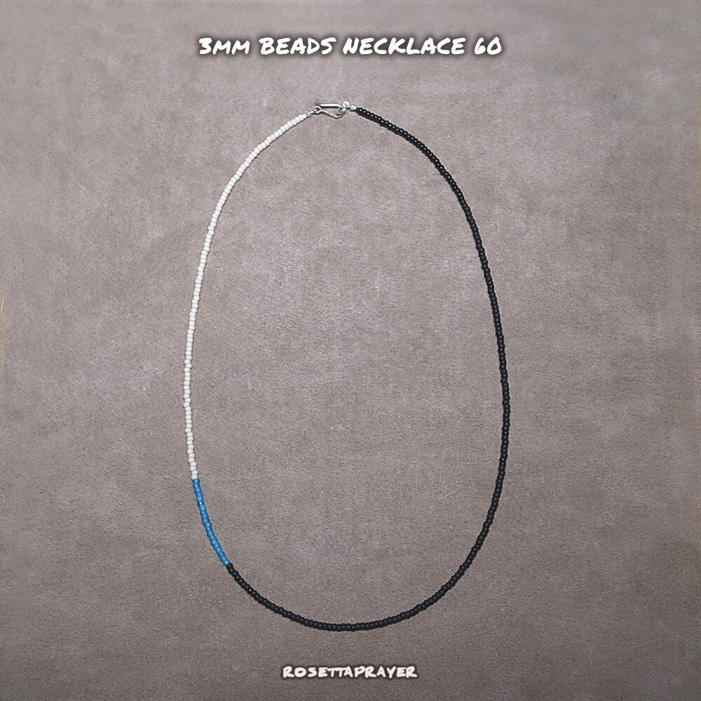 3mm ビーズ ネックレス 60- マットブラック/ライトブルー