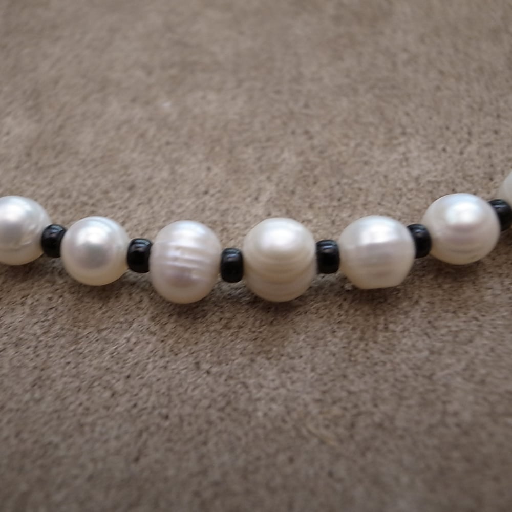 淡水パールとグラスビーズのコンビのネックレスになります。